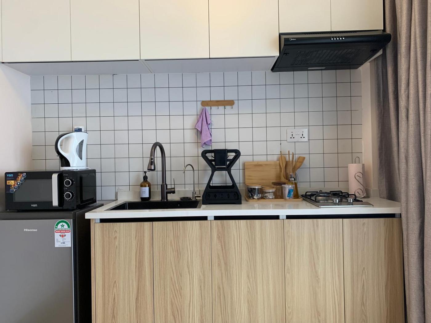 Studio Apartment with Balcony. This apartments special feature is the infinity pool. The apartment features 1 bedroom and 1 bathroom with a bath and free toiletries. In the well-fitted kitchenette, guests will find a stovetop, a refrigerator, kitchenware and a microwave. This apartment has a washing machine, flat-screen TV with streaming services, pool views, as well as chocolate for guests. The unit offers 1 bed.