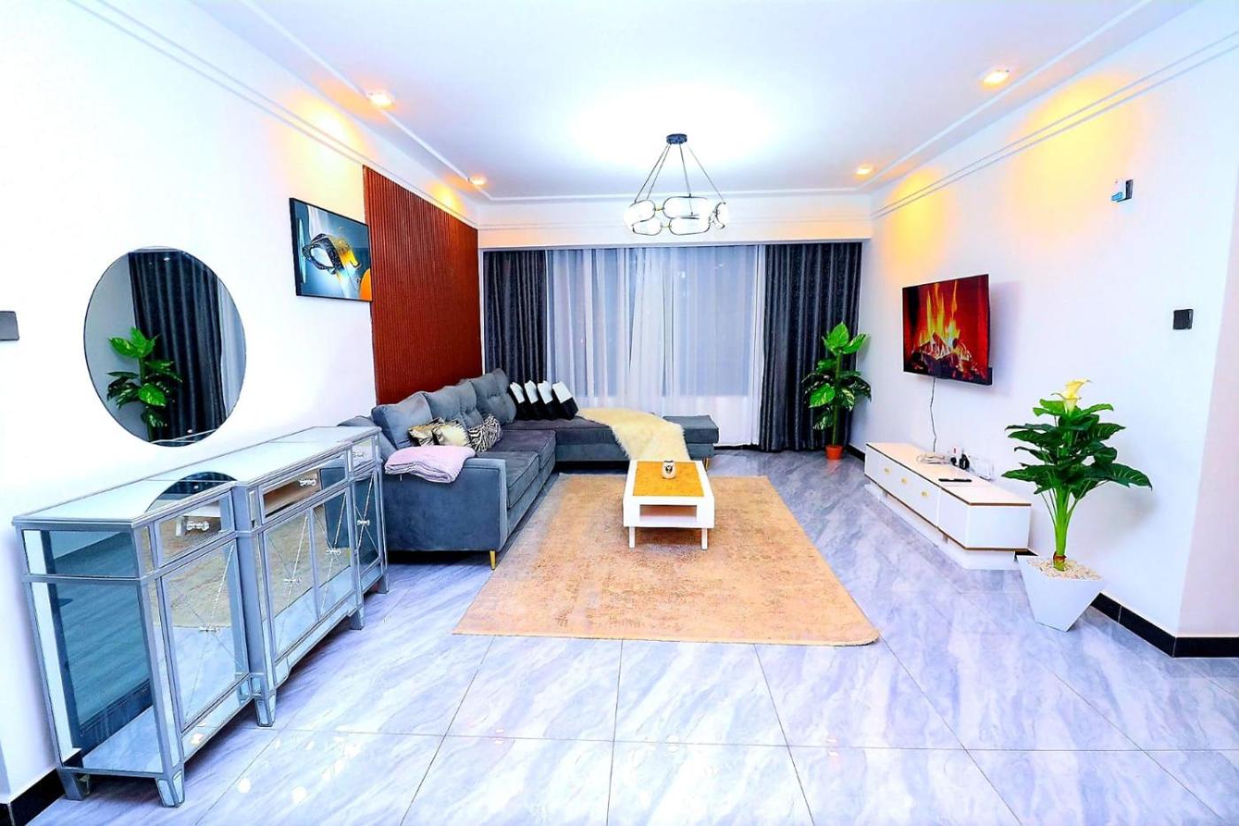 In the Kilimani district of Nairobi, close to Shifteye Gallery, Beautiful executive two bedroom apartment with fully equipped gym ample parking space swimming pool children playing ground and amazing scenic views has an indoor pool and a washing machine. This apartment features a private pool, a garden and free private parking. Kenyatta International Conference Centre is 5.2 km away and Nairobi National Museum is 6.4 km from the apartment.
